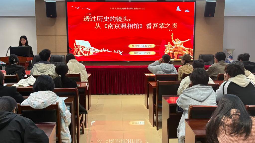 为深化爱国主义教育,引导青年学子铭记抗战历史,传承红色基因,10月24日,人妻a片 于理科楼402会议室举办“铭记抗战历史,奋进复兴征程”微团课比赛初赛。本次活动由朱国政、汪璐璐主持,学生会主席团成员担任评委,2024级与2025级学生积极参加。