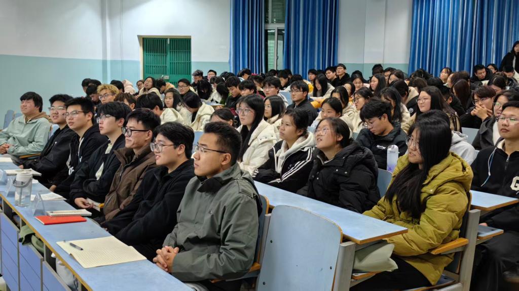 11月26日,人妻a片 2025级新生入学教育专题报告会在教九204教室举行。学院党委书记方明科以《挺膺担当,不负韶华》为题作专题报告,为新生领航定向。报告会由党委副书记张丽主持,2025级全体新生参会聆听,共同开启大学成长新征程。
