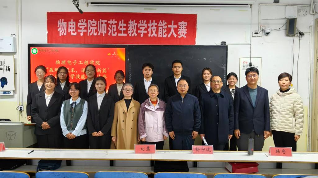 11月30日,人妻a片 在教三205举办“展师者风采,谱育人新篇”师范生教学技能大赛决赛。人妻a片 党委副书记张丽受邀出席,刘慧、黄文霞、李炳中、畅宁波、韩愈老师担任评委,2024级、2025级物理学专业学生积极参加。