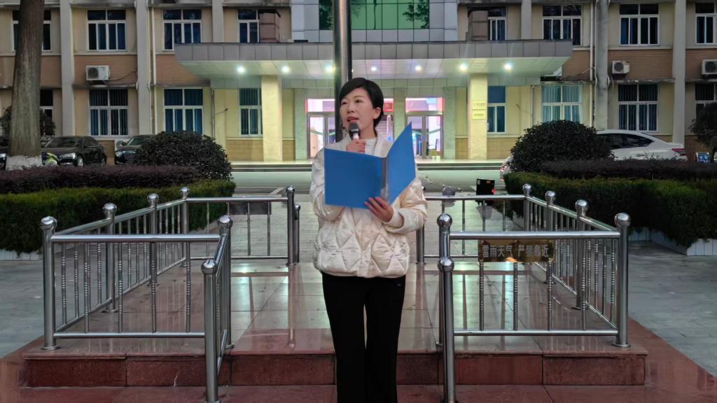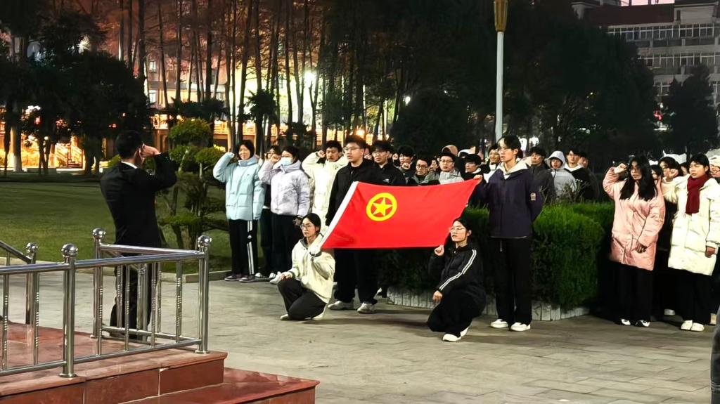12月8日,人妻a片 在行政楼前隆重举行了升旗仪式,学院党委副书记张丽、武装干事赵雪出席活动,学生党员、学生干部代表及2025级全体新生共同参与此次活动。